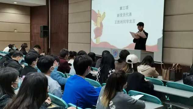 大会第三项,新学生党员代表王胜利同学进行发言,他对新学生党员讲到一是要提高素质,虚心学习,勤于实探索,把知识转化为能力。二是要端正态度,踊跃实践,奋发有为,争做时代佼佼者。三是要勇于创新,乐于奉献,坚定信念,永葆一颗对党和人民忠诚的心。