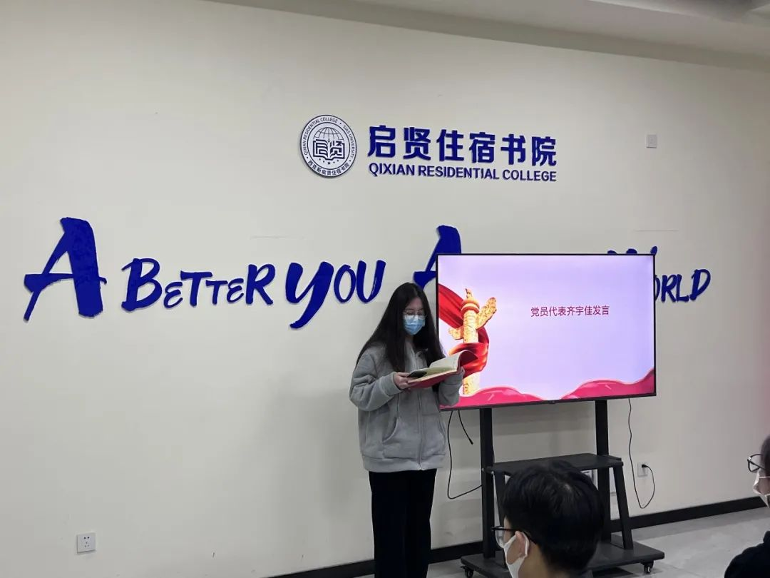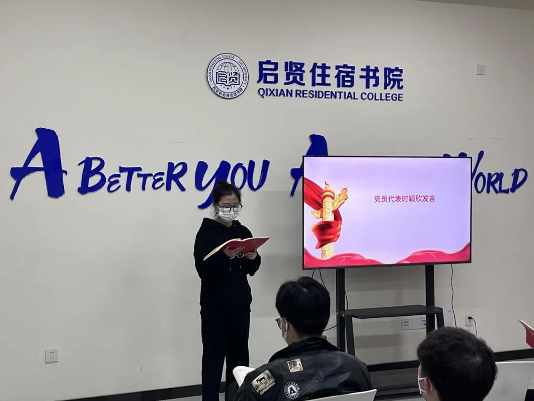2022年11月7日,启贤住宿书院“一站式”学生社区学生第二党支部在B008多功能活动室召开主题为“观礼二十大,踔厉奋发向未来”的理论学习会议,启贤住宿书院“一站式”学生社区学生第二党支部全体学生党员参加本次理论学习会议。
