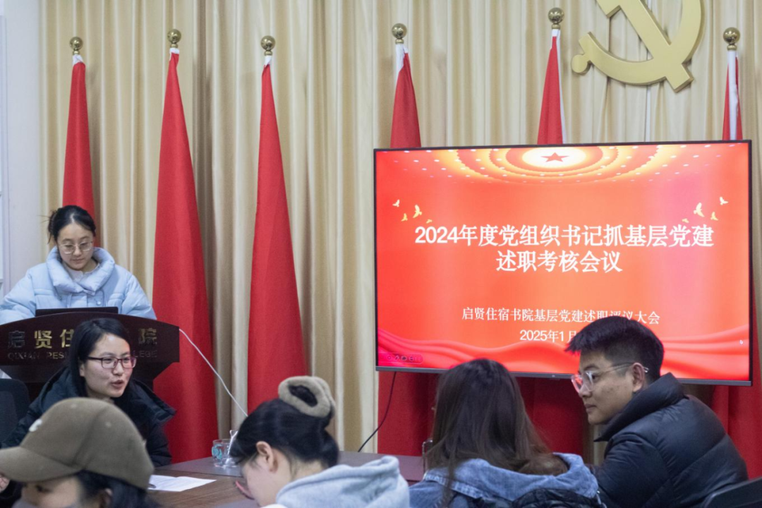 2025年1月8日上午,启贤住宿书院在B003召开基层党建述职评议考核会议。我院党总支副书记赵志攀、学生主管王晓蕾、副主管闫聪及全体育人导师参与会议。
