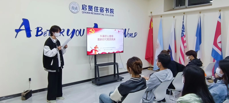 2022年11月14日,启贤住宿书院学生第二党支部在B008多功能活动室召开主题为“永葆初心使命,展新时代党员风采”的理论学习会议,启贤住宿书院学生第二党支部全体学生党员参加本次理论学习会议。