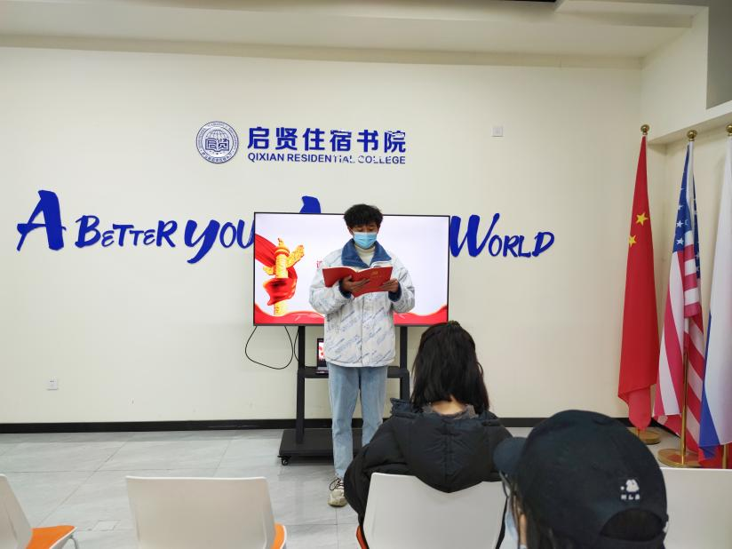 2022年3月22日,启贤住宿书院学生党支部在负一楼008活动室召开“牢记初心担使命,青春接力再出发”理论学习会议,会议由学生党支部工作人员带领参会学生党员学习。