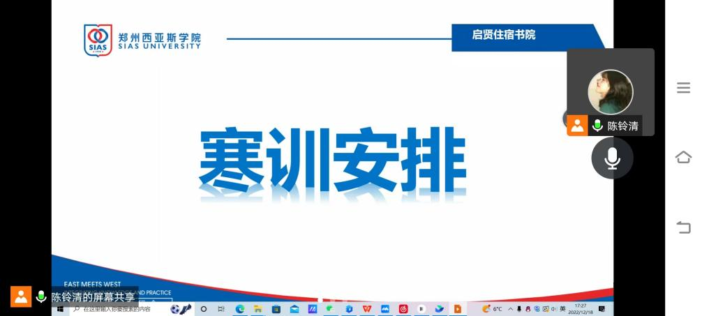 2022年12月19日上午十点,启贤住宿书院分团委中英文辩论队在腾讯会议举行2022——2023学年辩论队寒假训练营开营仪式。仪式由启贤住宿书院第三届分团委中英文辩论队领队、寒假训练营总教练陈铃清主持。
