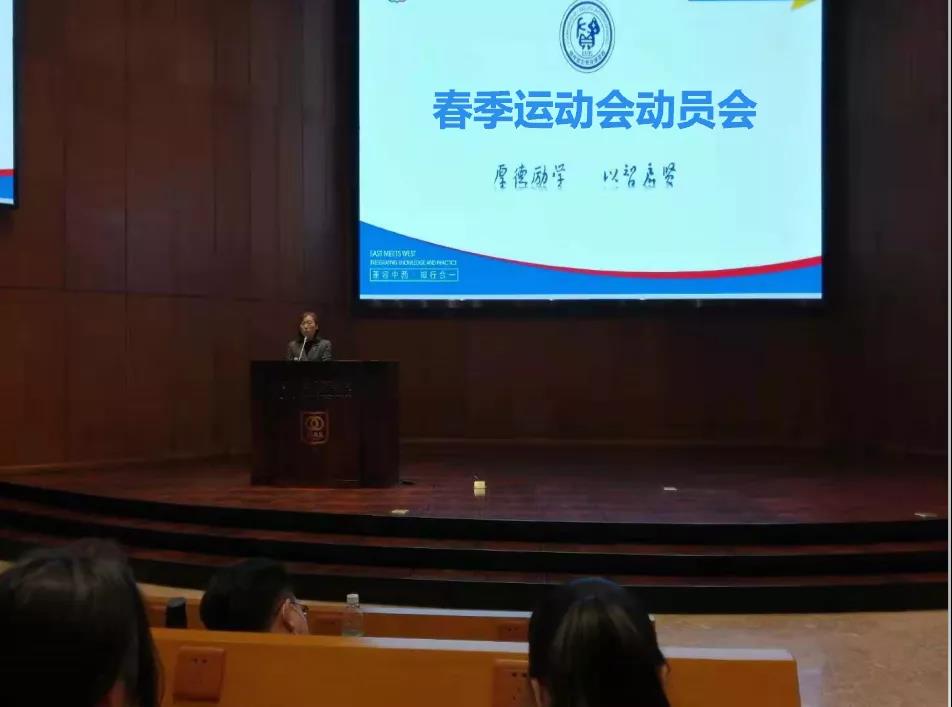 在我校2021学年春季运动会即将到来之际,为充分调动运动员的积极性,同时保障训练期间各项工作有序进行,启贤住宿书院“一站式”学生社区于2021年4月13日下午在图书馆一楼报告厅举行运动员动员大会,本次会议由启贤住宿书院“一站式”学生社区党委副书记桂苹苹主持,全体育人导师及全体参赛学生参加此次动员大会。