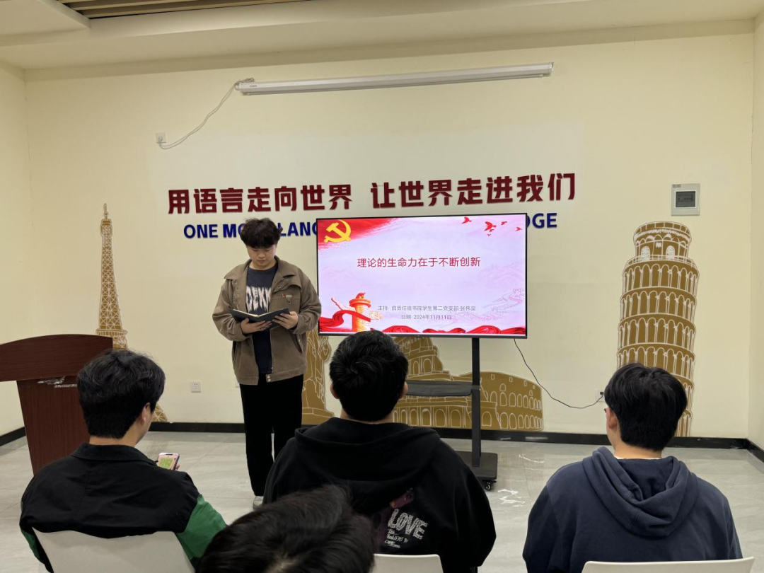 11月11日,启贤住宿书院“一站式”学生社区第二党支部在B008召开主题为“理论的生命力在于不断创新”理论学习会议,“一站式”学生社区第二党支部全体学生党员参会,会议由张伟豪主持。