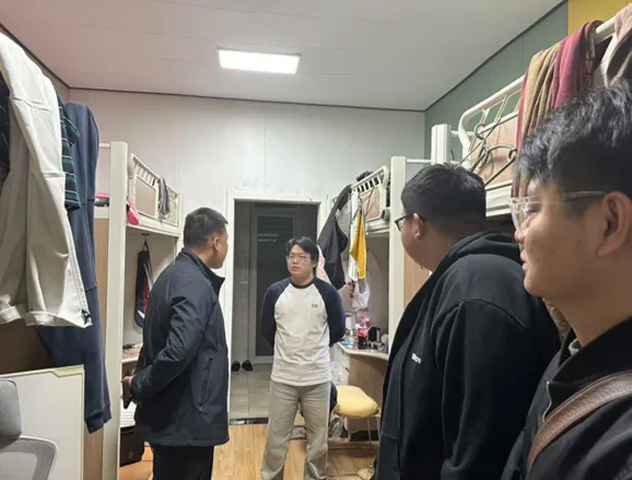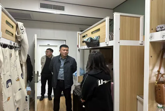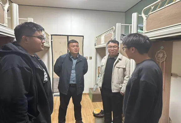 为深入了解毕业生学习生活情况,保障2025届毕业生工作的开展,2024年11月5日晚上,启贤住宿书院“一站式”学生社区党总支副书记赵志攀、学生主管王晓蕾、副主管闫聪、全体育人导师深入走访毕业生宿舍,了解毕业生的宿舍卫生、就业意愿等情况。