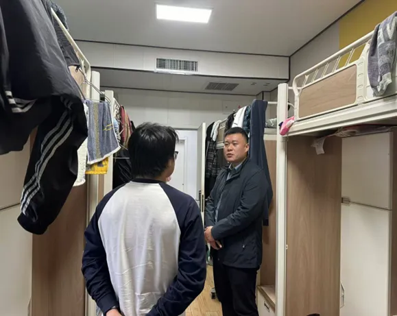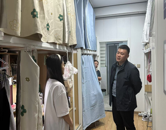 走访中,赵志攀与毕业生们进行了面对面的交流,深入了解毕业生们的学习生活状态、就业意愿及毕业实习进展,详细询问了他们在就业过程中遇到的困难和挑战。他鼓励毕业生们要珍惜大学时光,认真完成剩余的学习任务,不断提升自己的综合素质和竞争力。同时,他也强调了树立正确的就业择业观的重要性,希望毕业生们能够根据自己的兴趣和能力,选择适合自己的职业道路。此外,他还强调了宿舍安全卫生的重要性,对毕业生们的宿舍卫生状况、用电安全、消防安全等方面进行了细致的检查。他不仅关注宿舍的清洁程度,还特别检查了电线是否乱拉乱接、电器是否超负荷使用、消防设施是否完备等问题。他提醒毕业生们要加强防火、防诈骗以及用电安全意识,养成良好的生活习惯,为学弟学妹们树立榜样。