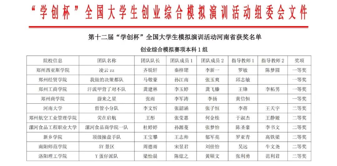 近日, 2025年第十二届“学创杯”全国大学生创业综合模拟大赛河南省赛结果揭晓,管理学院学子凭借卓越的实力和出色的表现,荣获一等奖2项、二等奖1项,并获得晋级国赛的资格,同时彰显了管理学院在创新创业教育领域的深厚底蕴和辉煌成就。