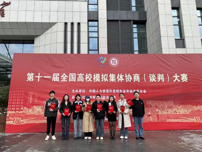 最终,经过两天的激烈角逐,由朱子纯、王珂、张理想、张凯峰四位同学组成的劳方代表队荣获全国大赛二等奖;由晁宇恒、高嘉雪、段文迪、王书红4位同学组成资方代表队荣获全国大赛三等奖;朱子纯、高嘉雪、王珂3位同学因表现突出,荣获“最佳谈判员”奖;彭林园、李素麦2位老师荣获“优秀指导教师”奖!