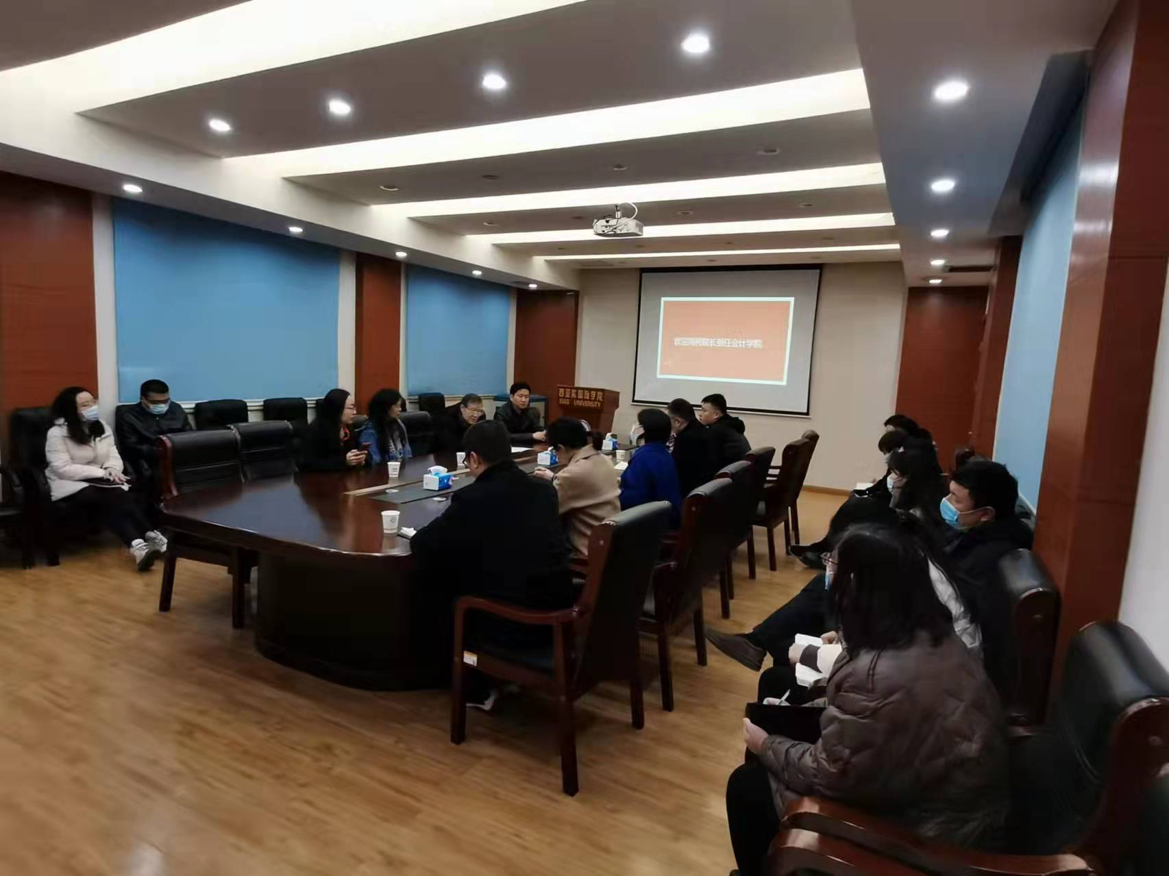 3月2日上午,会计学院新任院长任职见面会在12113会议室举行。学校代理校长赵予新、人力资源处处长孙铭浩、会计学院院长周柯、党总支副书记赵志攀及全体系室主任参加了此次会议。会议由孙铭浩主持。