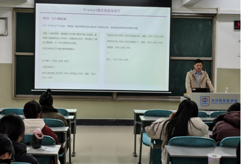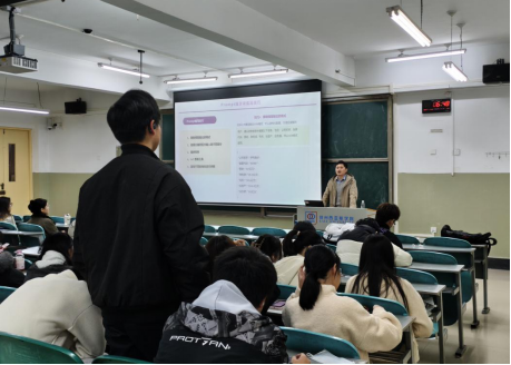 讲座中,丁老师先梳理专业学习路径:从大一基础工具入门,到大四大模型应用开发,清晰呈现四年核心课程;同时介绍数据分析师、AI应用工程师等岗位需求,助力学子明确方向,为“毕业即就业”打基础。