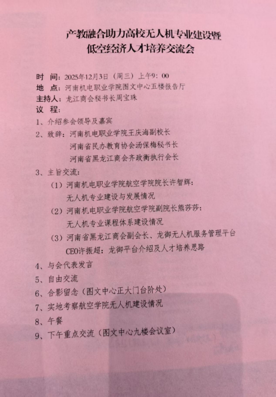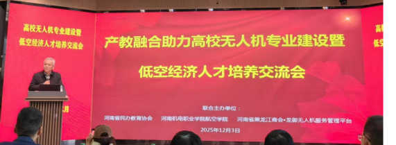 2025年12月3日上午,由河南机电职业学院主办的“产教融合助力高校无人机专业建设暨低空经济人才培养交流会”在该校图文中心报告厅顺利召开,我校经济与管理学院李璐璐、田永杰等老师参会。会议由龙江商会秘书长周宝珠主持,河南机电职业学院副校长王庆海、河南省民办教育协会秘书长汤保梅、河南省黑龙江商会执行会长齐政衡出席大会,来自校、企、行等多方代表齐聚一堂,围绕无人机人才培养与产业对接展开深入交流。