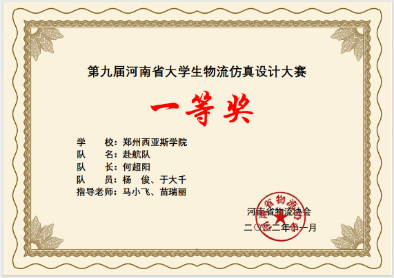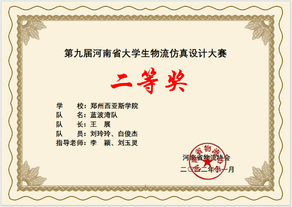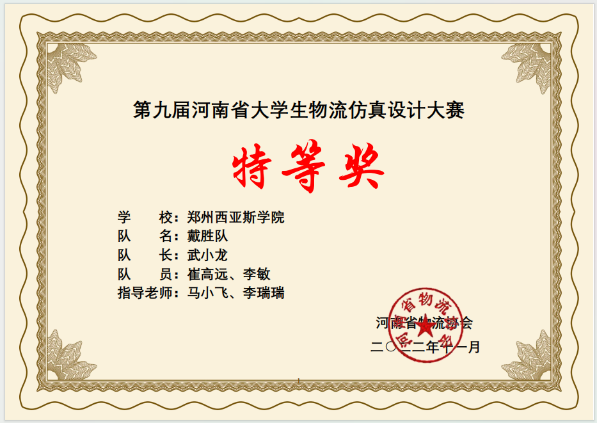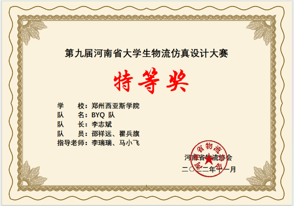11月5日,由河南省高等教育学会及河南省物流协会主办、郑州大学承办的“第九届河南省物流仿真设计大赛”顺利落下帷幕,我院物流管理专业学生在竞赛中表现出色,获得了省级特等奖两项、一等奖一项、二等奖一项的佳绩。