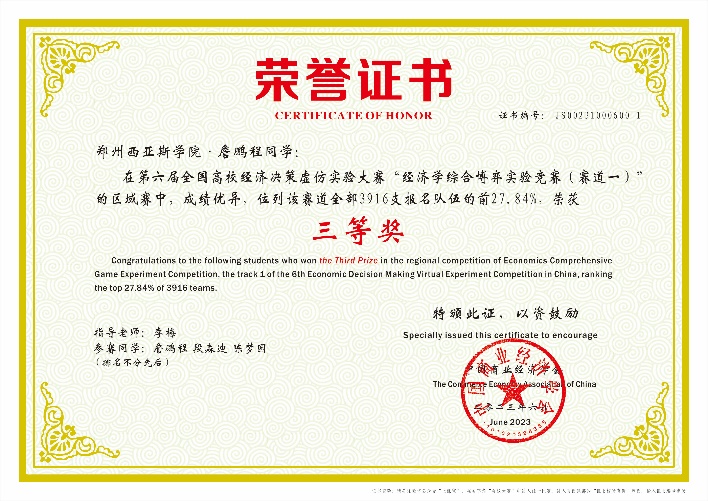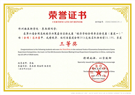 由中国商业经济学会主办,广东工业大学承办的第六届全国高校经济决策虚仿实验大赛总决赛近日落下帷幕。由李梅老师带领的团队,最终荣获全国三等奖一项、省级一等奖一项、省级三等奖一项。