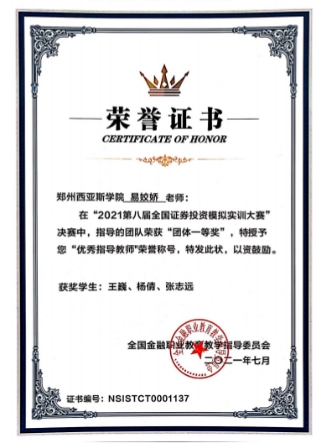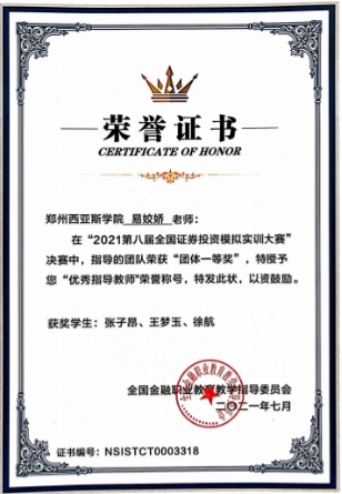 近日,2021年第八届全国证券投资模拟实训大赛圆满结束并公布获奖名单,我院学生在本次大赛中取得优异成绩,喜获国家级一等奖四项、二等奖四项。