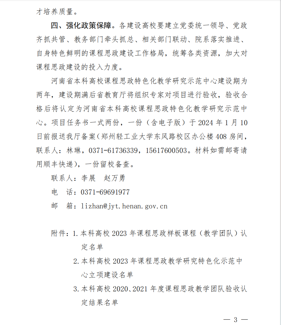 12月1日,河南省教育厅公示河南省本科高校2023年课程思政系列项目拟建设名单,根据河南省教育厅《关于开展2023年度本科高校课程思政系列项目建设和2020、2021年度课程思政立项项目验收认定工作的通知》(教办高〔2023〕350号)要求,经高校申报、资格审查、专家评审等环节,拟认定200门河南省本科高校2023年课程思政样板课程(课程授课团队自动认定为2023年课程思政教学团队)。其中,我院由薛淑娟老师负责,付元、王欣平、石亚娟、杨轶雯、朱琳、陈奕男、杜轶斐、马宏丽、付瑞霞等老师参与的课程《市场营销学》获得认定。