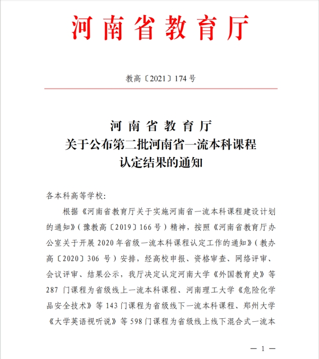2021年5月,我院《管理学》获批河南省第二批本科线上线下混合式一流课程;《国际贸易理论与实务》获批河南省第二批本科线上一流课程。