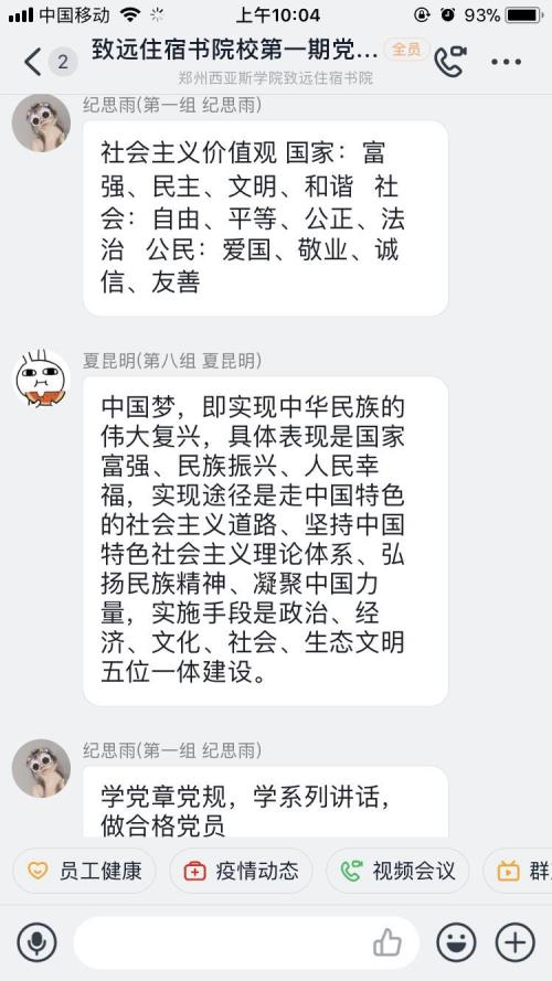 结合疫情防控工作的实际,本次培训主要通过泛雅、钉钉等线上平台进行,采取线上授课、分组研讨、视听课程、网络自学、经验交流的形式开展,做到疫情防控和学习提升两不误。通过学习,入党积极分子深入学习领会习近平总书记关于疫情防控的重要讲话和重要指示批示精神,加深了对党的基本理论和基础知识的了解和认识,进一步端正了入党动机,坚定理想信念,树牢“四个意识”,坚定“四个自信”。