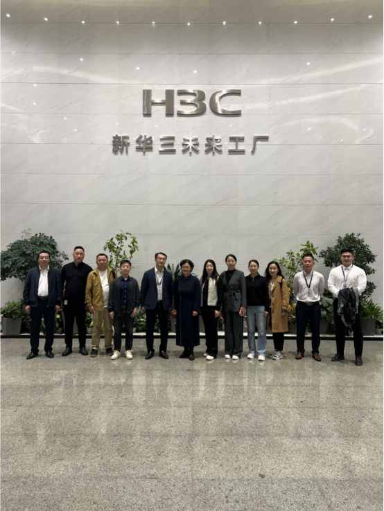 据悉,新华三集团分别在北京和杭州设立运营中心、技术研发中心和制造中心“双总部”,业务覆盖“芯—云—网—边—端”全产业链,拥有员工13000多名,拥有专利13000余件。其“AIinALL”的创新产品以及通过“AIforALL”行业赋能战略为百行百业提供解决方案和伙伴式服务。新华三公司在路由器、交换器方面已做到全国领先,智能产品应用在了政务、交通、教育、医疗等多个领域,展现了其在数字化解决方案领域的领导地位。参观未来工厂和企业总部后,商学院教师和新华三高管就AI如何赋能教育进行了探讨。
