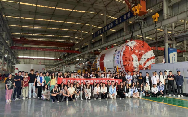 进入中铁装备集团,首先映入眼帘的一行大字是‘打造世界一流隧道掘进机研发和制造企业’,给人振奋的感觉。当组织学生们进入到生产车间进行认识环节,面对庞大的盾构机,同学们纷纷表示带给他们的是“震撼”。