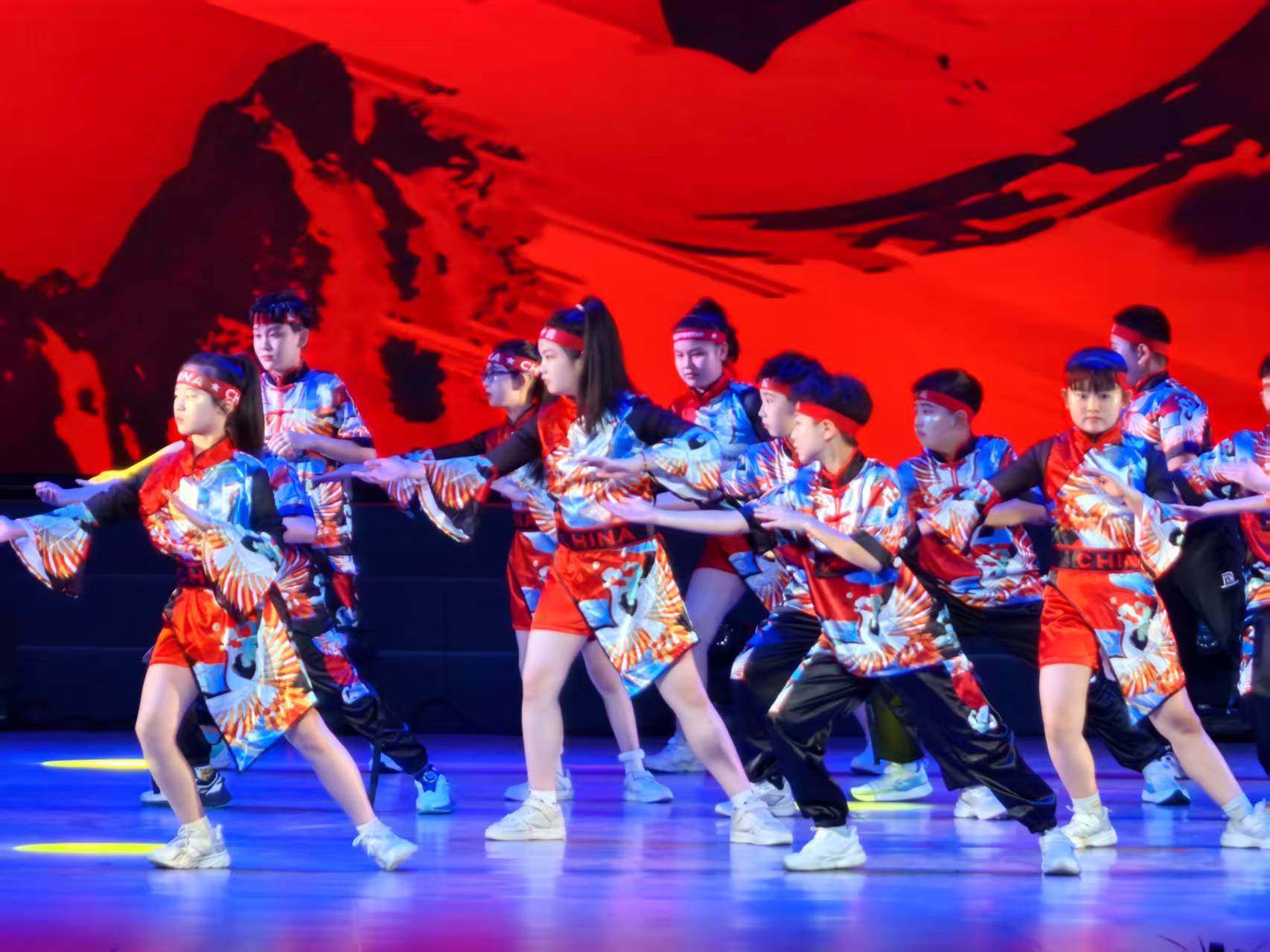 “拳出带风,脚起龙腾!” 面对困境保持坚强姿态,面对明天带着美好憧憬。四一班少年们以搏击操演绎《花样少年》,刚劲有力的动作与 “目光所至皆华夏” 的呐喊,燃爆全场对青春力量的喝彩。