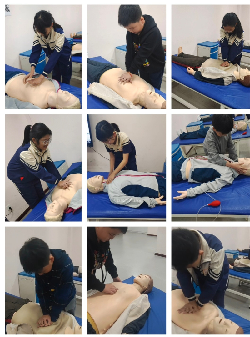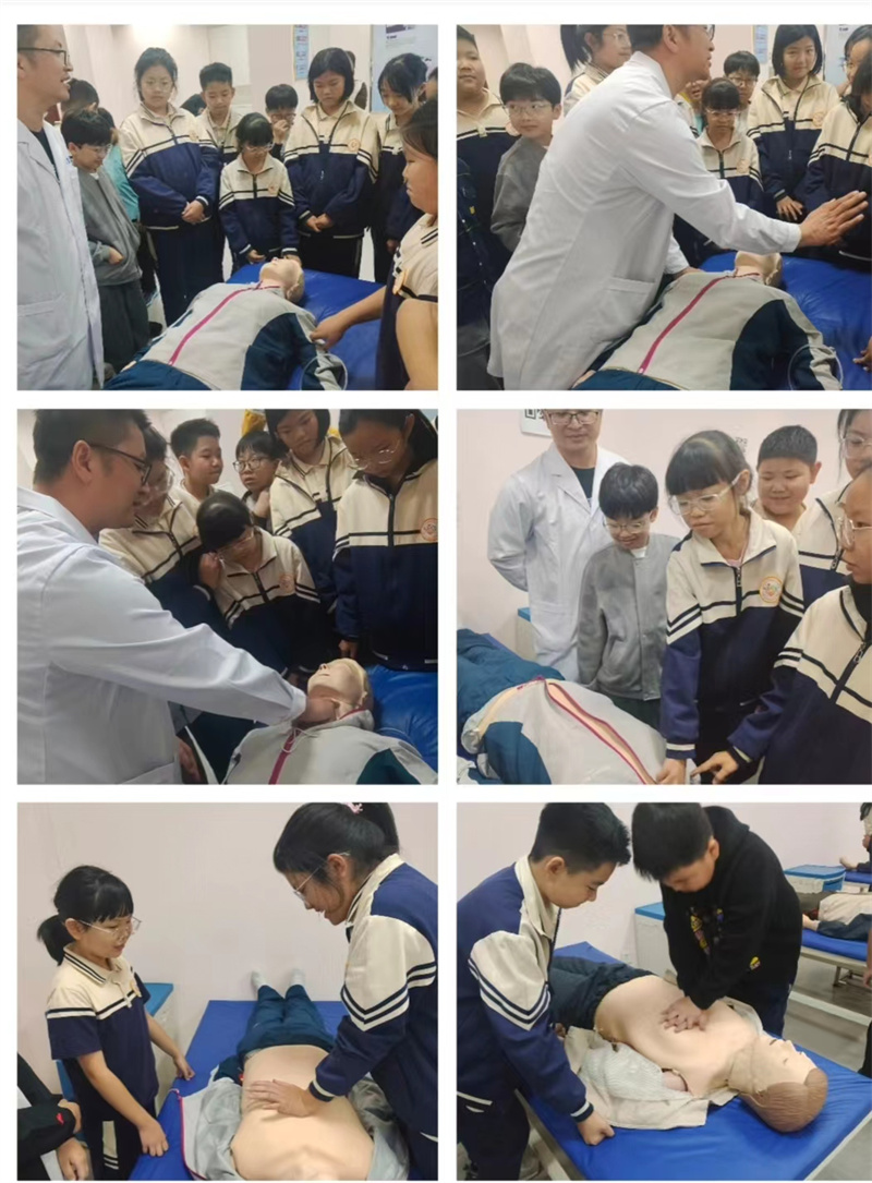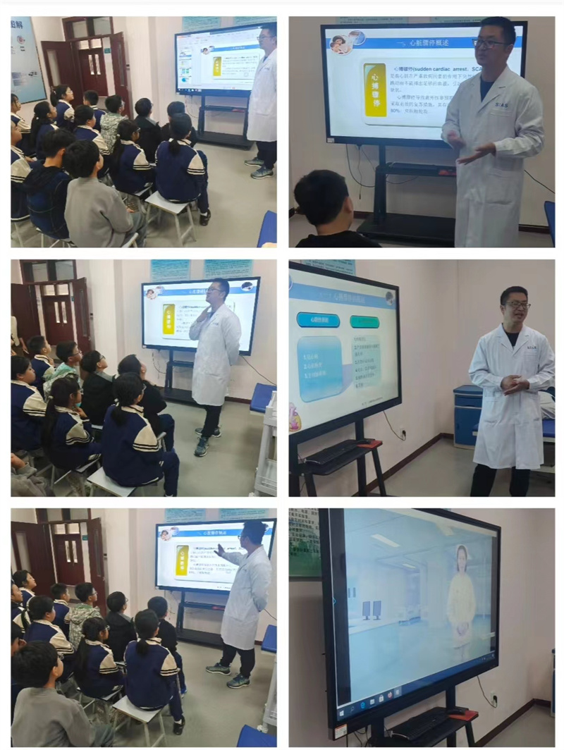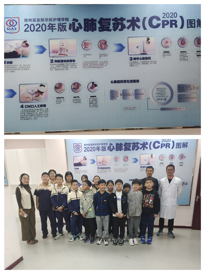 心搏骤停一旦发生,如得不到即刻及时地抢救复苏,4~6min后会造成患者脑和其他人体重要器官组织的不可逆的损害,因此心搏骤停后的心肺复苏,必须在现场立即进行。五二班全体学生在张梓柠爸爸妈妈的带领下,来到郑州西亚斯学院医学院进行实地参观学学习。在医学院曹老师的讲解下,学生们知道了什么是心脏骤停、心脏骤停的原因、如何正确进行心脏复苏。在 老师的操作演示下,每个学生进行反复练习、操作,提高学生对心脏健康的认识,培养学生的探索意识和急救意识,有助于提高学生的综合素质。
