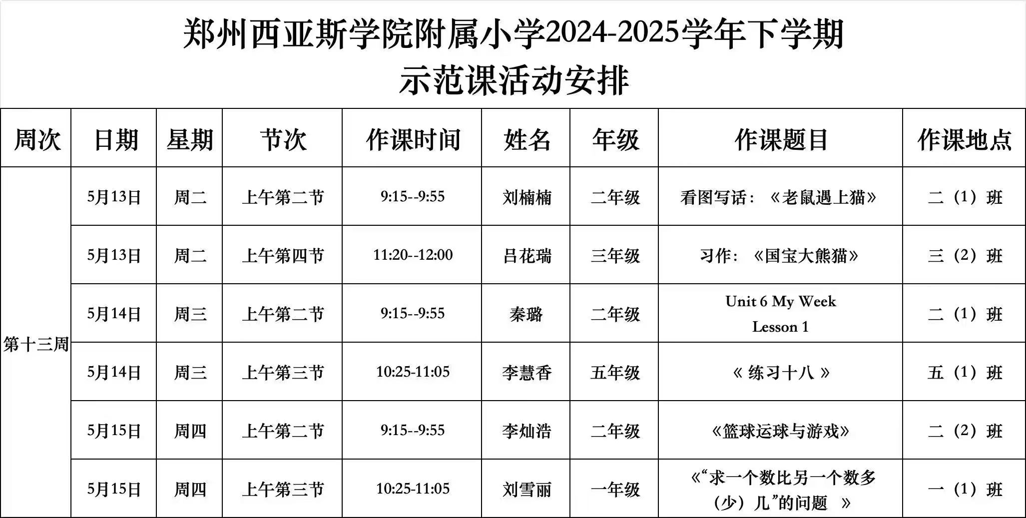 为充分发挥骨干教师在教育教学中的示范、引领和辐射作用,有效提升课堂教学质量,促进教师的专业成长,郑州西亚斯学院附属小学于5月12日——5月15日组织骨干教师开展示范课展示活动,本次活动涵盖语文、数学、英语、体育四个学科,教研组和老师们积极准备,力求在教学经验和心得上倾囊相授,通过创新教学实践展现课堂改革的多元成果。