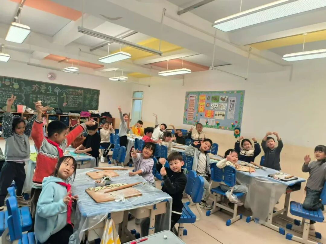 不一会儿,一盘盘形态各异的饺子就摆满了桌面,每一个都承载着孩子们的用心与创意。当热气腾腾的饺子端上桌时,香气瞬间弥漫整个教室。孩子们围坐在一起,品尝着自己亲手包的饺子,脸上洋溢着幸福的笑容。