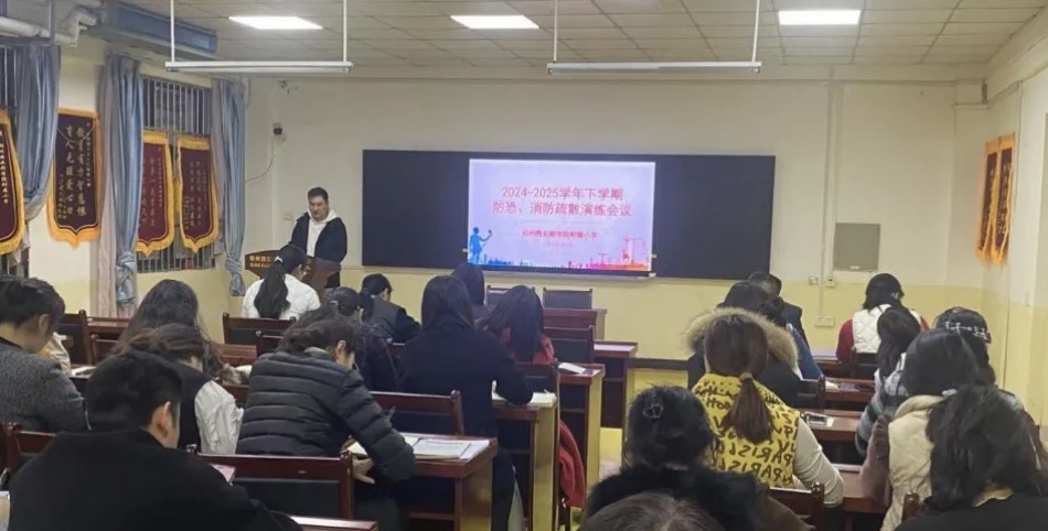 演练前召开全体教职工动员大会,学习《郑州西亚斯学院附属小学反恐怖防范演练活动方案》《郑州西亚斯学院附属小学消防疏散演练方案》及防火灾安全知识,使全体教师明确应急演练的职责和注意事项。