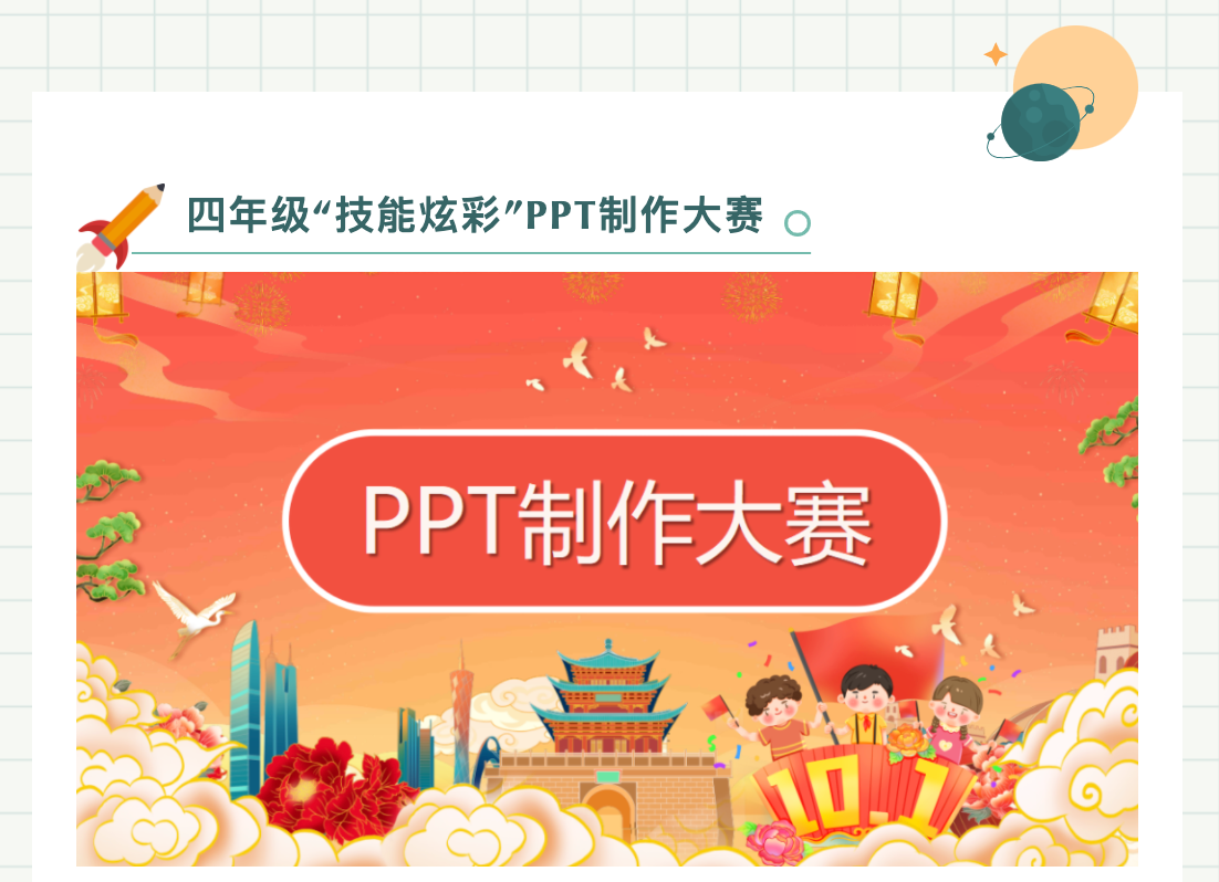 四年级的 PPT 制作大赛精彩非凡。在比赛过程中,同学们能熟练掌握 PPT 制作技术,通过给定素材设置背景、添加图片、文字、动画,插入音乐、视频、超链接等内容。每一次操作都是对技能的打磨,同时,这也极大地锻炼了逻辑思维,让内容展示更有条理,还能提升审美能力,使 PPT 更具观赏性。这将助力同学们在未来的学习汇报和展示中,制作出令人眼前一亮的 PPT,自信地展示自己的成果。