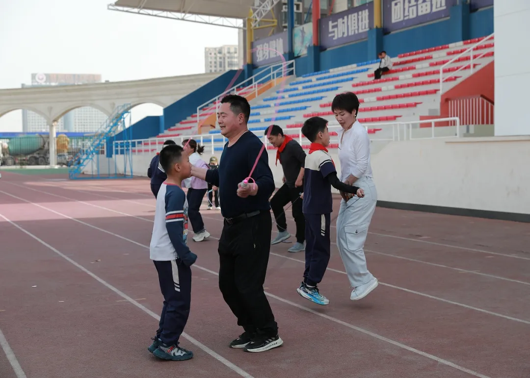 亲子跳绳比赛现场活力满满。家长与孩子默契配合,五彩跳绳飞速舞动,在空中织就一道道光影。他们步伐轻盈,节奏明快,脸上洋溢着幸福与专注,每一次跳跃都是亲情与团结的见证。