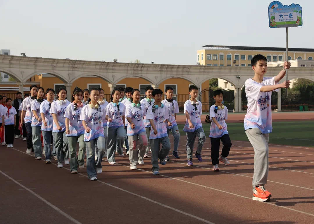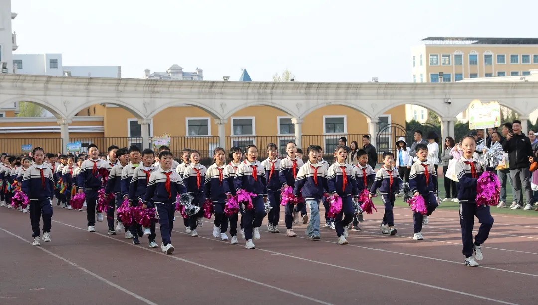 紧接着,活力无限的学生方阵闪亮登场。背后彩色翅膀轻盈灵动,带着对天空的向往。他们笑容灿烂,口号声响彻云霄,步伐虽稚嫩却坚定有力,踏出的节奏里满是对运动的热爱、对未来的期待。