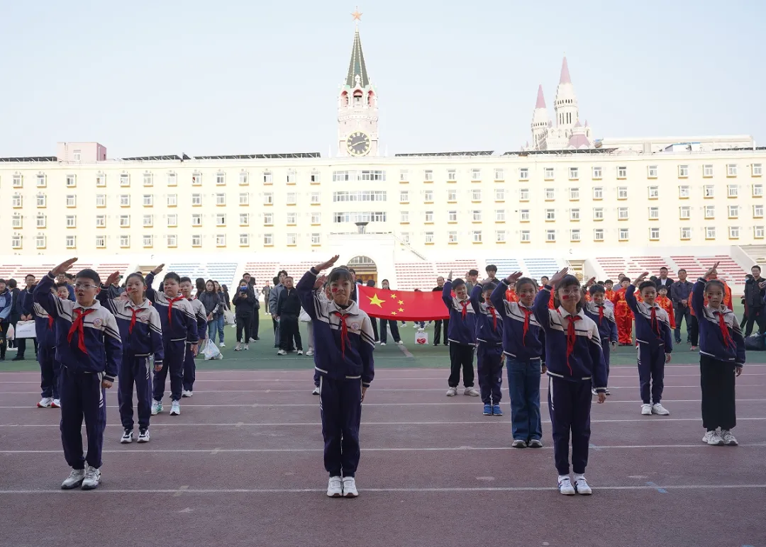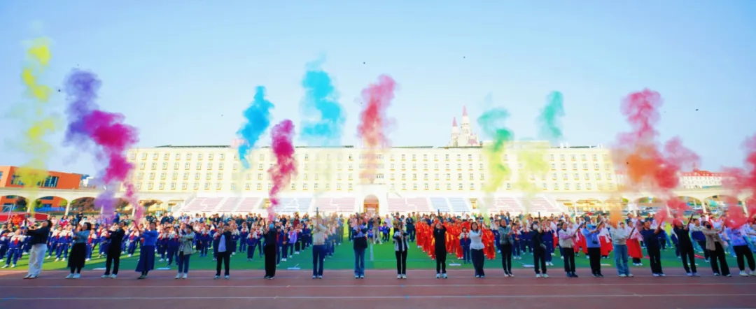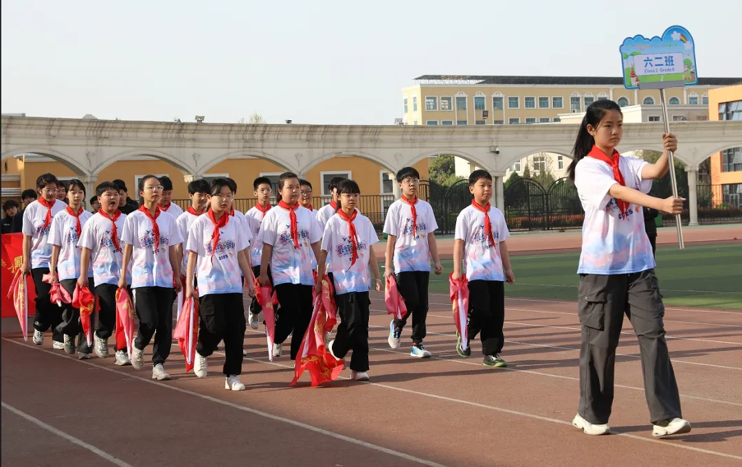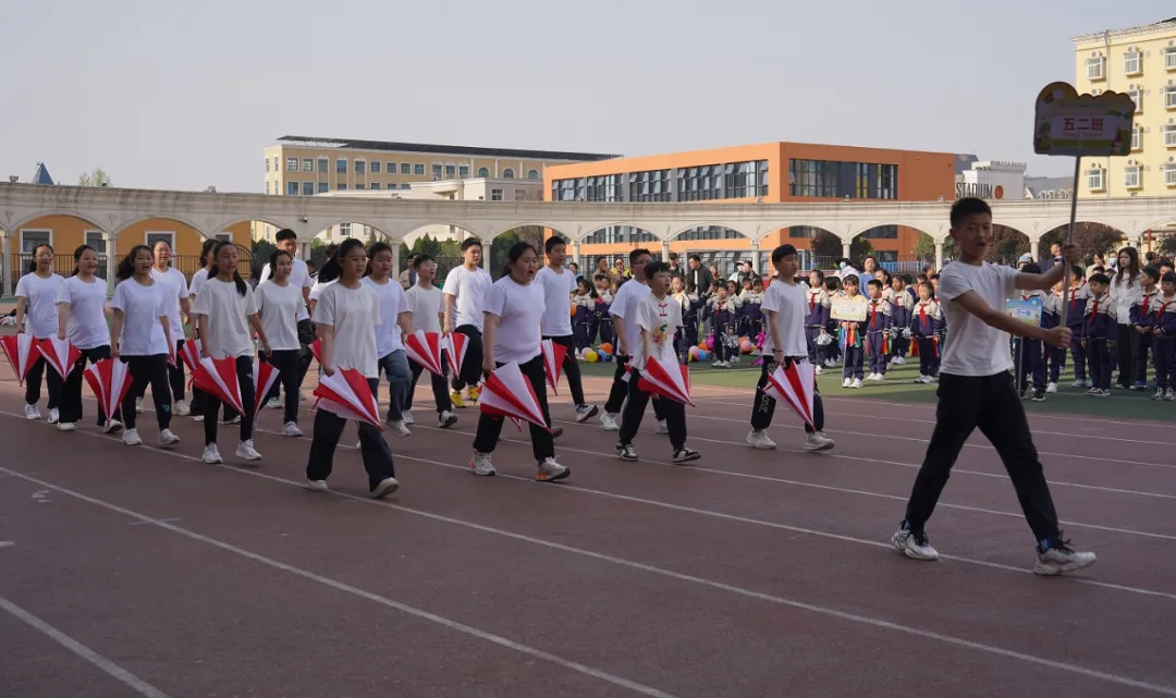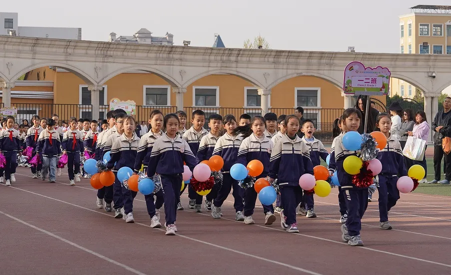 同学们手持道具,五彩气球在微风中轻颤,好似怀揣的斑斓梦想,烈烈彩旗随风舒展,