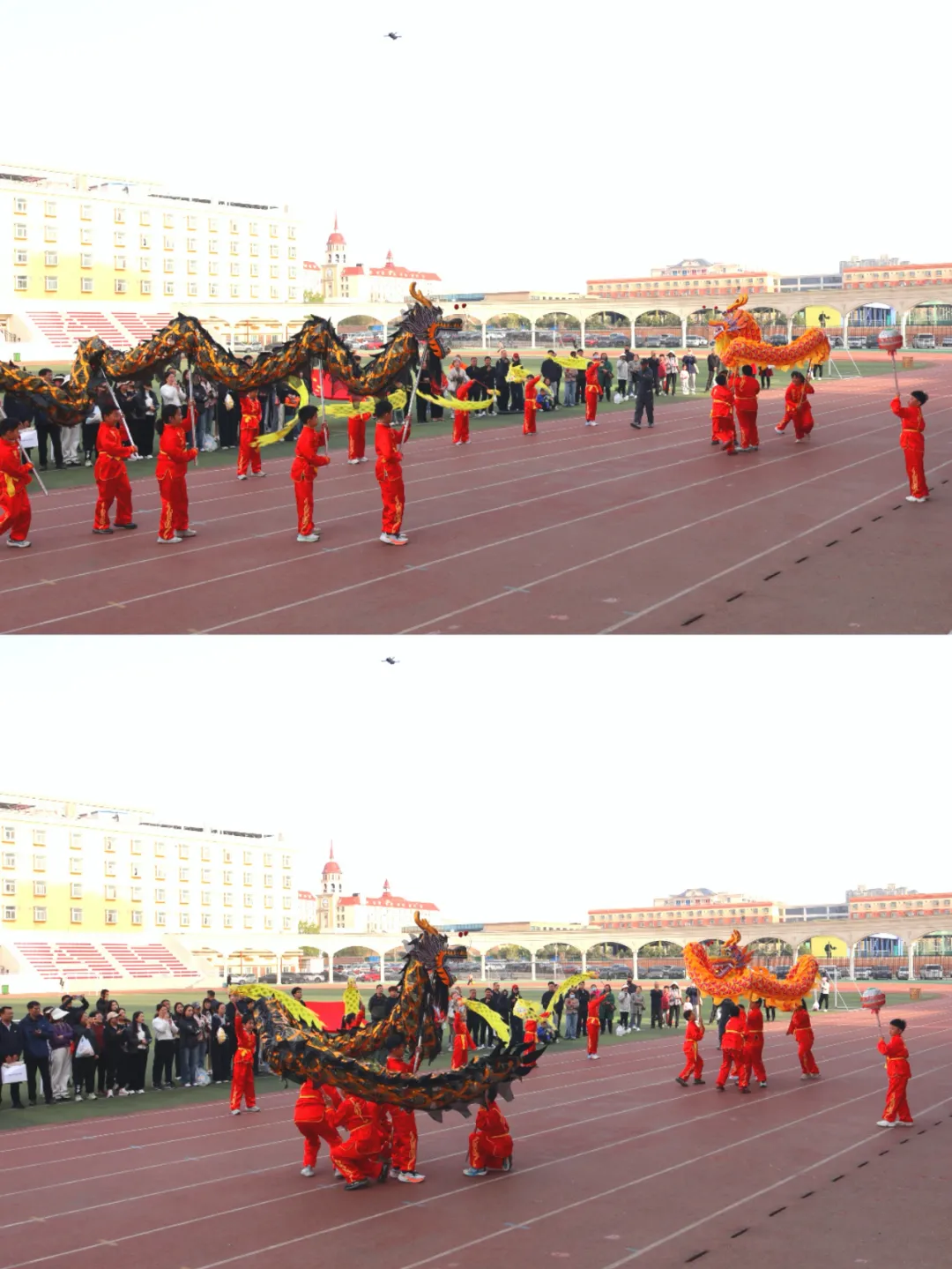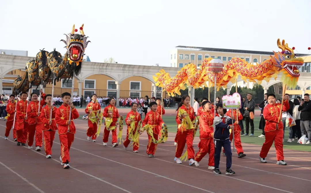 开幕式表演精彩纷呈,有活力四射的舞蹈、动感十足的韵律操,尤其是当两条威风凛凛的巨龙登场,龙身蜿蜒,气势磅礴。武龙者虽是四年级的小学生,却配合默契,动作行云流水,巨龙时而盘旋,时而飞腾,赢得了阵阵掌声与喝彩。