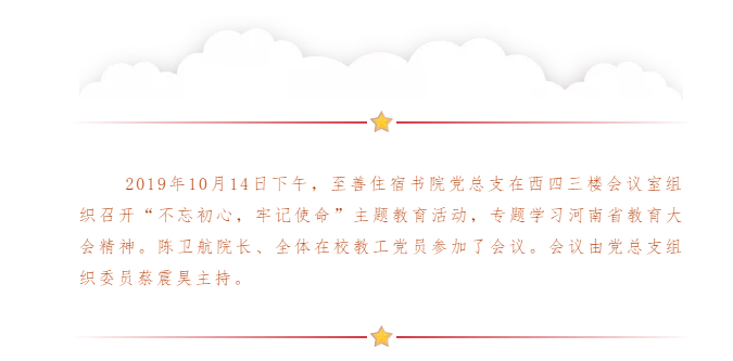 会上,大家集体学习了2019年全省教育工作的总体要求。全体教工党员一致认为,在以习近平同志为核心的党中央坚强领导下,省委、省政府坚定实施科教兴豫、人才强省战略,坚持教育优先发展,围绕补短板、强弱项、提质量、促改革,出台了一系列政策,采取了一系列措施,全省教育事业取得了长足进步。对于书院来说,围绕立德树人根本任务,要坚持贯彻全员育人、全过程育人、全方位育人的体制机制,将育人工作做细做强。