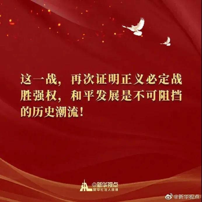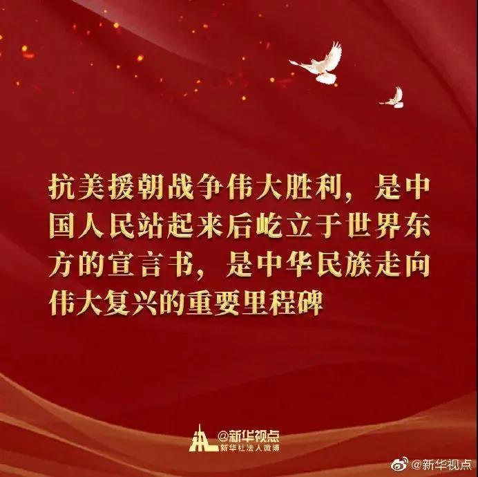 抗美援朝战争伟大胜利,将永远铭刻在中华民族的史册上!永远铭刻在人类和平、发展、进步的史册上!