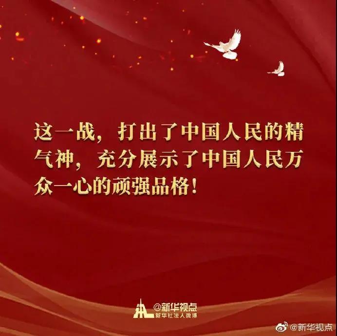 回望70年前伟大的抗美援朝战争,进行具有许多新的历史特点的伟大斗争,瞻望中华民族伟大复兴的光明前景,我们无比坚定、无比自信。让我们更加紧密地团结在党中央周围,弘扬伟大抗美援朝精神,雄赳赳、气昂昂,向着全面建设社会主义现代化国家新征程,向着实现中华民族伟大复兴的中国梦,继续奋勇前进!