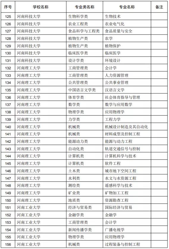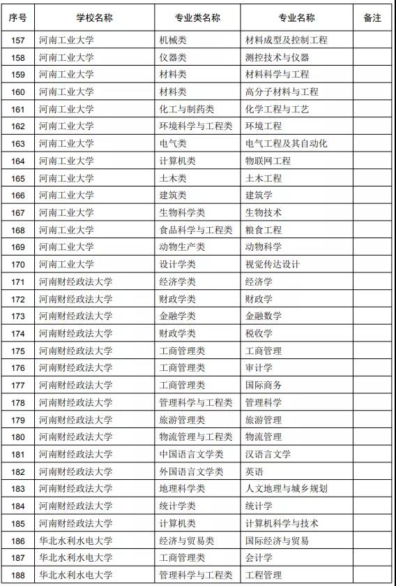 附件:2020年度河南省一流本科专业拟立项建设名单