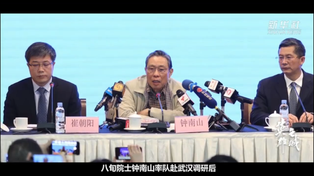 冷炎通过视频会议共享屏幕的方式让大家观看了由新华社制作的首部武汉战“疫”2个月全景纪录片《英雄之城》。