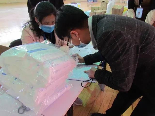 4月20日,由专项党费采购的首批口罩发放至自疫情发生以来坚守在学校防疫一线和已返岗工作的教职工手中。