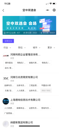 找到4月11日空中双选会点击进入,点击【进入会场】即可看到由就业创业处为我校毕业生精选的用人单位。