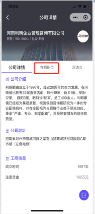 通过浏览或搜索,找到心仪的用人单位,点击公司名称,进入查看单位和职位详情。