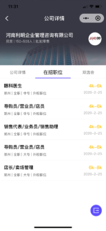职位详情页点击【留言】按钮,可与招聘者在线沟通。