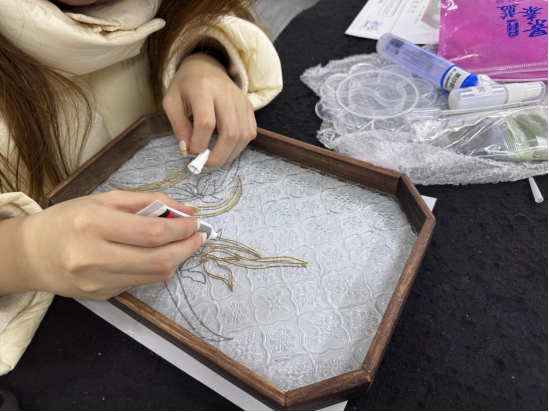 活动伊始,我院分工会主席吕蕾向教职工们普及掐丝珐琅的历史渊源、文化内涵及制作工艺,让教职工们近距离领略了非遗文化的艺术张力。体验环节中,大家跃跃欲试,专注投入,从最初的生疏试探到后来的得心应手,大家在一针一线、一填一抹中,感受着非遗技艺的独特魅力与创作的乐趣。