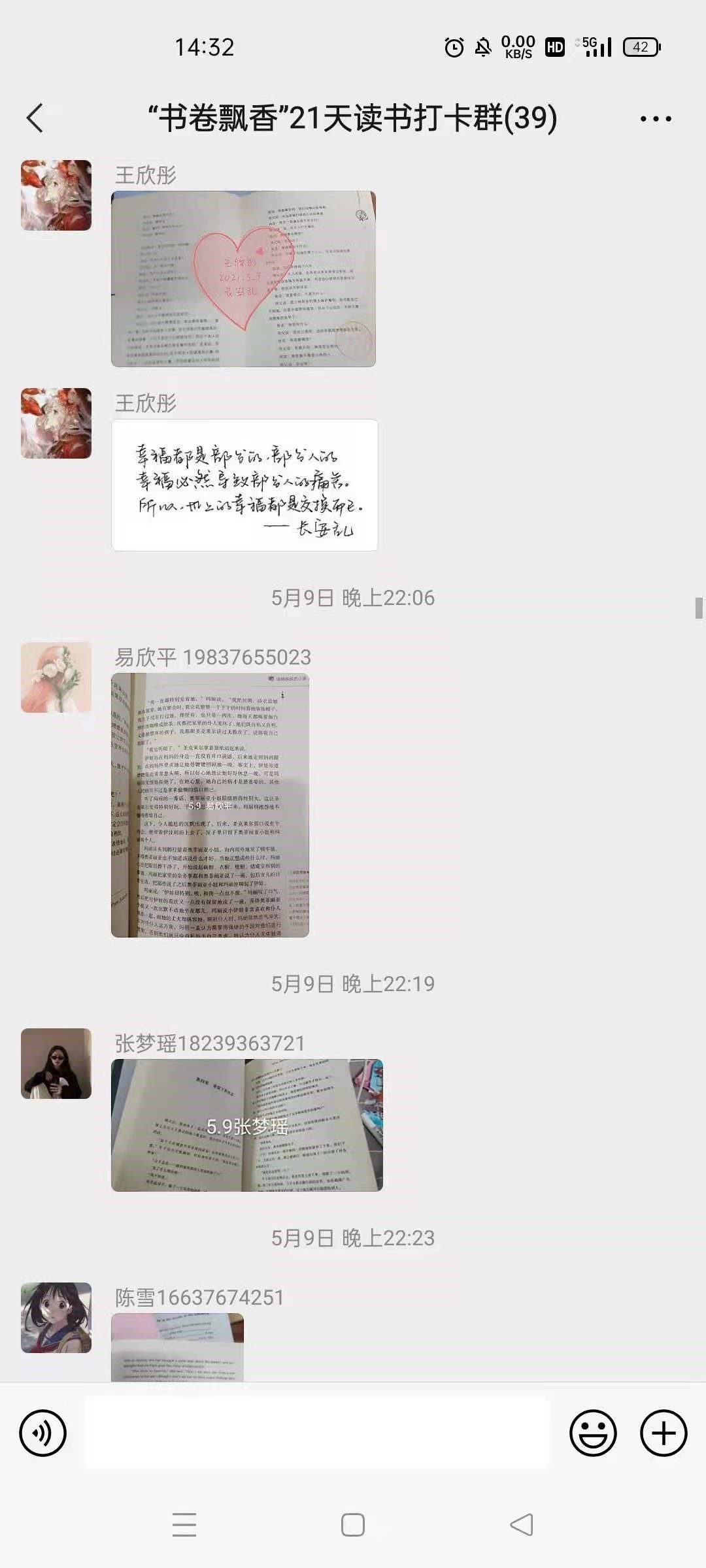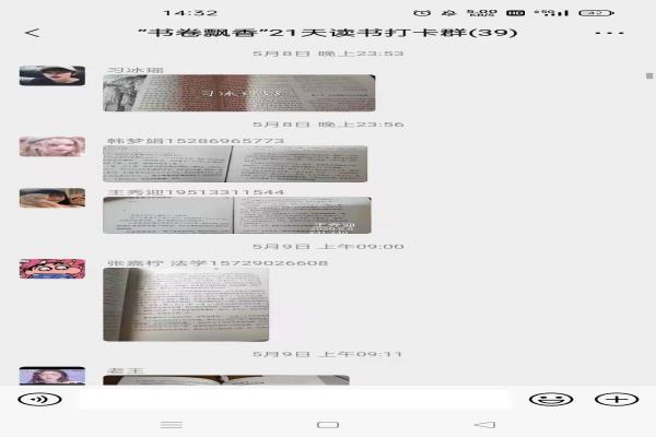 本次活动受到博艺住宿书院同学的广泛参与,同学们每日在活动群内分享今日的读书内容与读书感悟,营造了良好的读书分享氛围。书籍是传承文明的载体,是人类进步的阶梯。周恩来总理小时候曾说出“为中华之崛起而读书”的名言。青年时期是一个人读书学习的黄金时期,博览群书、勇于实践、奋发有为是有志青年的自觉行动和不懈追求。“腹有诗书气自华”,阅读也是启迪心灵的最好方式,是构建个体幸福精神世界的根本途径。读书已经成为了提升个人灵魂的重要方式。21天能够养成一种习惯,通过本次活动,同学们养成了良好的读书习惯,提高了审美情趣和人文底蕴。