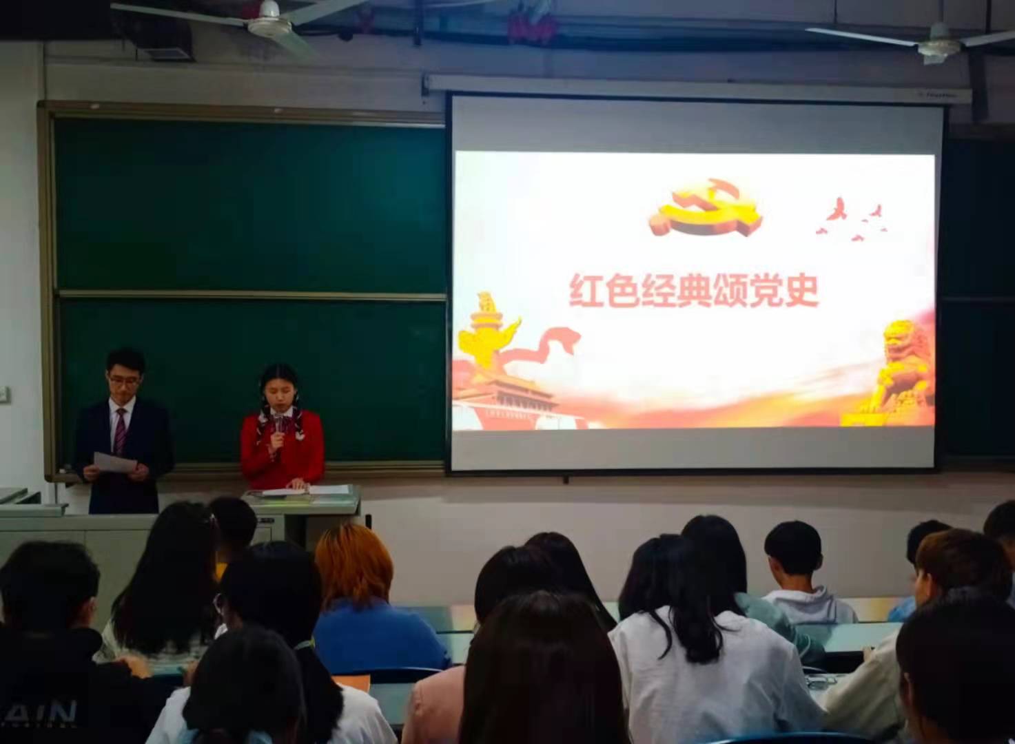 首先,由主持人上台宣讲此次竞赛目的,宣布活动开始。紧接着,由同学们进行诵读红色经典诗歌作品,以此来调动大家的气氛,随后进行有奖提问环节,同学们热情高涨,使现场氛围愈加活跃。活动进入中段,由主持人宣布开放答题通道,讲述参赛规则,并引导全场同学积极参与活动。