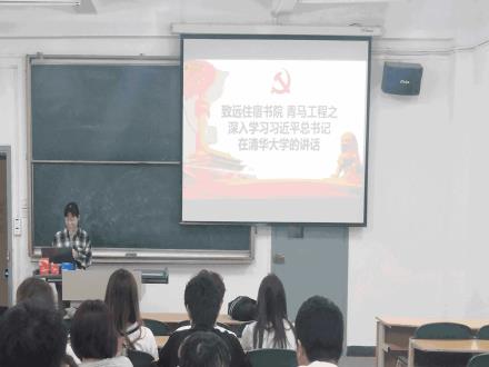 宣讲开始前,赵明月简单的介绍了习近平总书记在清华大学考察时的活动,并指出了习近平总书记强调的“坚持中国特色世界一流大学建设目标方向,为服务国家富强民族复兴人民幸福贡献力量”。