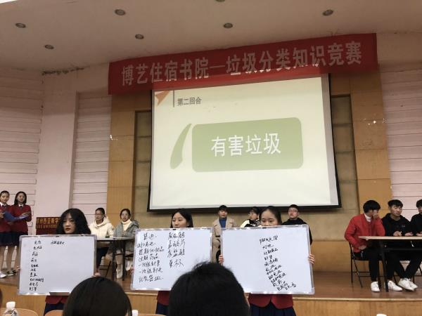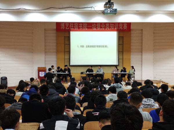 为进一步普及垃圾分类知识,传播绿色环保的意义,增强同学们的环保意识,11月24日晚19时,由博艺住宿书院学生会学习部和青年志愿者协会共同组织的“垃圾要回家,请你帮帮他”主题垃圾分类知识竞赛在肯尼迪报告厅开展。博艺住宿书院分团委副书记宋烨老莅临本场竞赛。本次竞赛由刘海洋、习冰瑶主持。