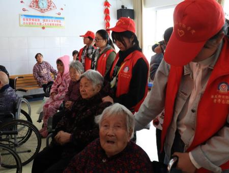 上午7时40分,青年志愿者们于校东门集合完毕一同乘坐校车前往新郑福缘敬老院进行义演活动。活动进行之初,各组志愿者根据排好的流程前往各自的岗位。一些志愿者在外面陪着工作人员布置演出现场,一些志愿者到屋里陪伴老人聊天,缓解老人的紧张情绪,尽快融入老人。一些志愿者照顾无法走动的老人;一些志愿者陪伴观看表演的老人,并耐心为他们讲解。还有一些志愿者则是在与老人闲聊、下棋等。本次义演活动于上午九时正式开始,四位主持人宣布义演正式开始。活动节目异彩纷呈,丰富多彩。《红歌串烧》彰显中国七十年发展历程;《外婆的澎湖湾》回忆儿时快乐的时光,为老人带来曾经最美的回忆;小品《儿子来了》为老人普及诈骗知识;《相亲相爱》寓意志愿者们与老人相亲相爱一家人,志愿者们一直是他们的亲人,会一直陪伴在身边。演员们用心表演,精心准备,歌曲合唱、朗诵、舞蹈、小品等节目历时一个半小时,受到了老人们的一致好评,老人们都露出了热情洋溢的笑容。一届又一届的志愿者们接过爱心的接力棒,将这份情延续下去。动不仅激发了同学们热心助人、献身公益的热情,让大家体会到了帮助他人、奉献社会的乐趣。