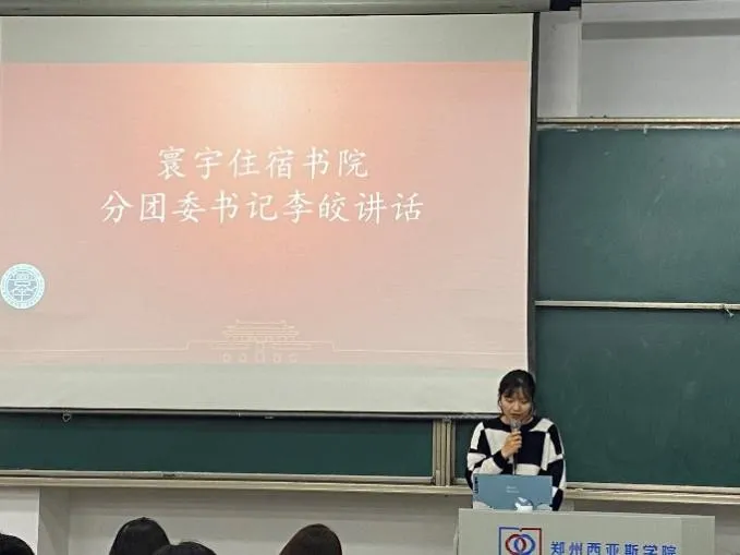 接着,寰宇住宿书院分团委书记李皎发表讲话,她要求寰宇住宿书院分团委学生会的成员要在校团委的领导下、在寰宇住宿书院分团委的指导下,做到服务同学、自我管理、自我进取、自我追求。并要求大家全面贯彻书院“各项工作争第一,书院管理创特色,团队合作比贡献,安全稳定抓牢实”这一理念,教导同学们要发挥自身先进性,要有逢一必争,逢冠必得的信念,同时她表达了对新一届干事的殷切期望,希望他们认真对待每一次任务,贯彻落实我院的育人方针部署,砥砺德行、精进能力、勤奋敬业,在工作实践中,牢牢把思想和行动统一到初心和使命上,时时警醒自身,做到足履实地,恪尽职守。