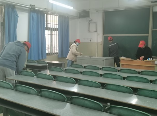 首先对就近的教学楼的教室和走廊进行了打扫。干事们积极配合,以小组合作方式高效地完成了对教室和走廊的打扫。